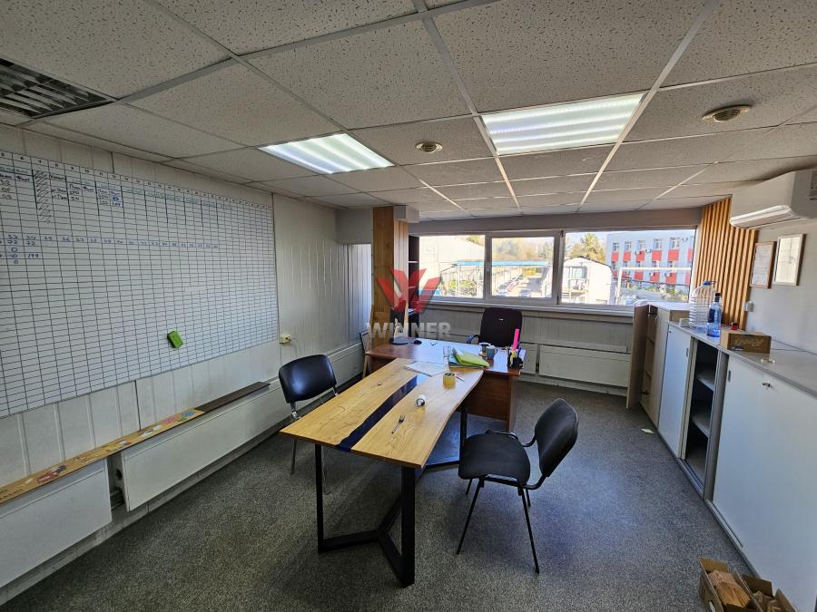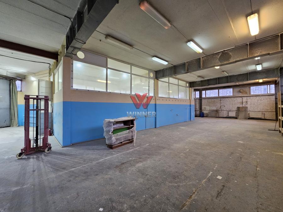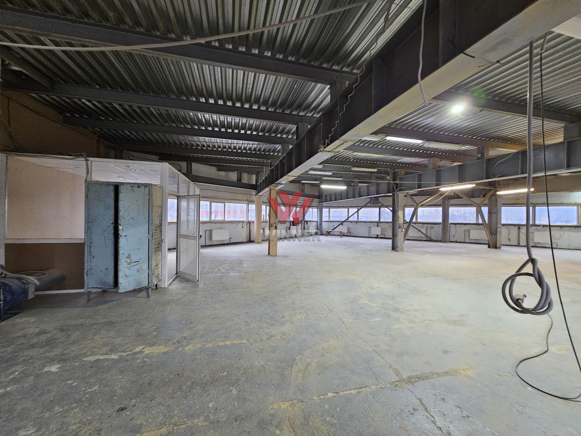 В складском блоке высота потолка 3.9м, есть огороженные комнаты из пластиковых перегородок.