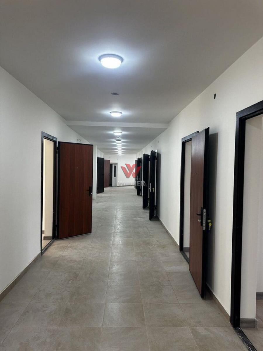 3 этажа + цоколь, кабинетная планировка. В каждом офисе есть сан-узел (можно убрать)